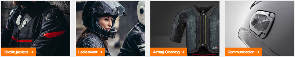 The website is clean, structured, and made to help riders quickly find what they need. Main categories include: