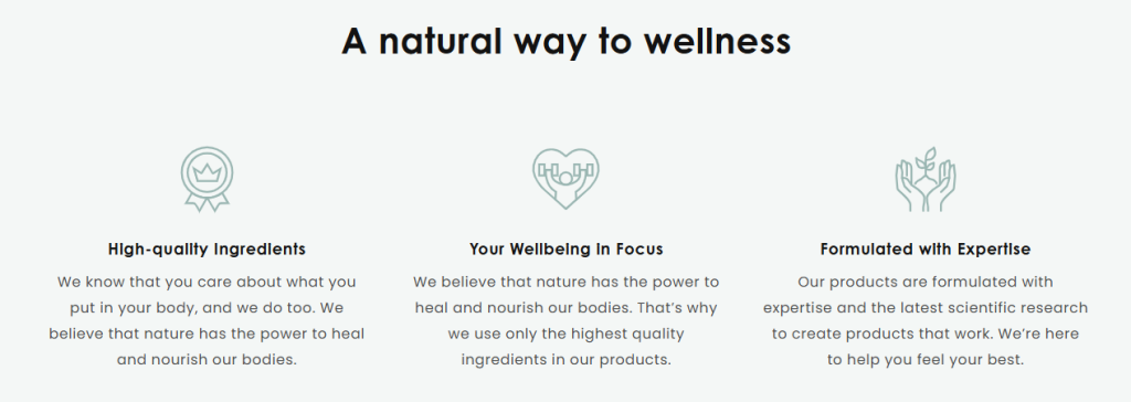 In addition, the website contains educational content: guides on how to choose supplements, how to combine different vitamins, and how to integrate healthy habits into daily life. There is also a transparent “Who We Are” section that outlines the company’s values, quality control process, and environmental mission.