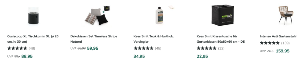 Die Vielfalt im Angebot von Kees Smit deckt nahezu jeden Bedarf der Außengestaltung ab. Besucher der Webseite finden alles von weitläufigen Lounge-Sets und Esstischen bis hin zu Sonnenliegen und Sonnenschirmen. Ganz gleich, ob eine weitläufige Rasenfläche oder ein kompakter Stadtbalkon ausgestattet werden soll – Kees Smit stellt sicher, dass für jede räumliche Anforderung eine passende Lösung bereitsteht.