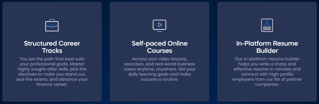• Специализирани кариерни пътеки: Можете да избирате между роли като Финансов анализатор, Инвестиционен анализатор или Инвестиционен банкер, като всяка пътека включва последователни курсове, завършващи със сертификационен изпит.