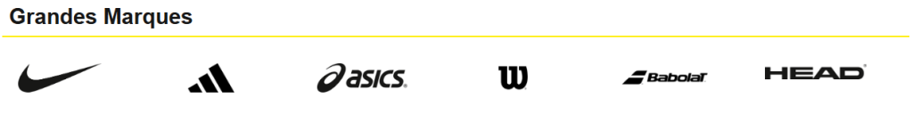 - Accessoires : sacs de sport, grips, cordages, balles et autres petits équipements indispensables.