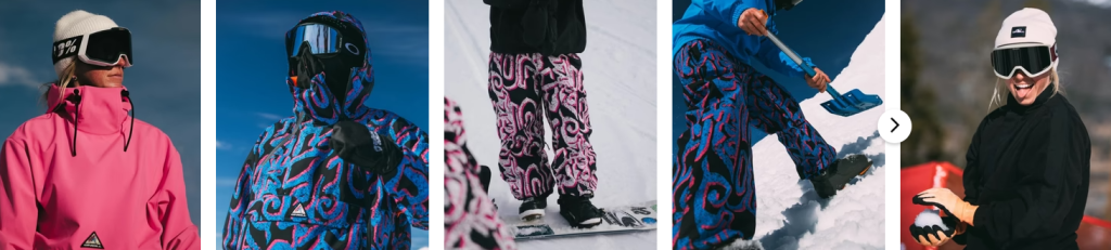 - Snowboard- und Ski-Bekleidung: Jacken, Hosen, Handschuhe und Accessoires, die für kalte Temperaturen und hohe Beanspruchung optimiert sind.