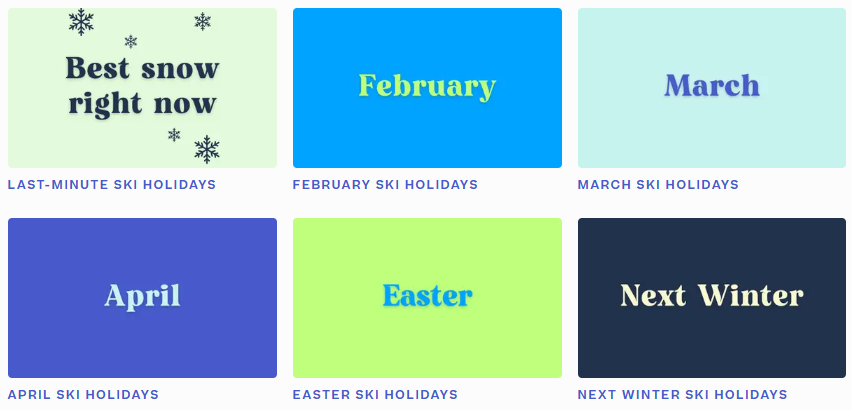 • A powerful search and comparison tool that lets you filter ski holidays by resort, date, price, duration, airport, and extras.